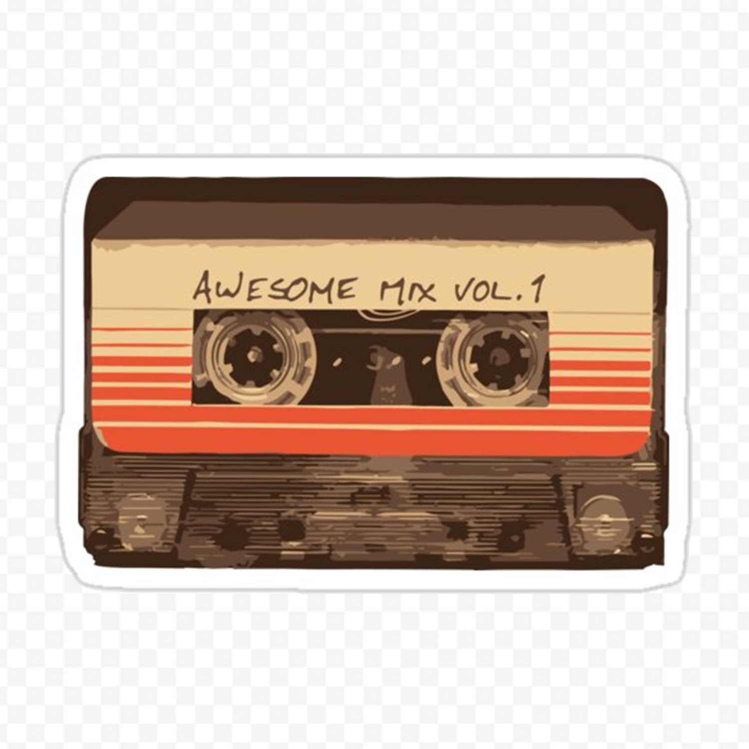 Votre sticker Awesome Mix 1 est détouré à la forme, il n’y aura donc pas de fond sur celui-ci, le stickers Awesome Mix 1 laissera apparaître la couleur du support.