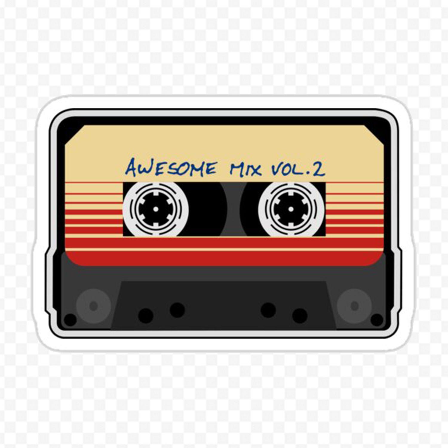 Votre sticker Awesome Mix Vol 2 est détouré à la forme, il n’y aura donc pas de fond sur celui-ci, le stickers Awesome Mix Vol 2 laissera apparaître la couleur du support.