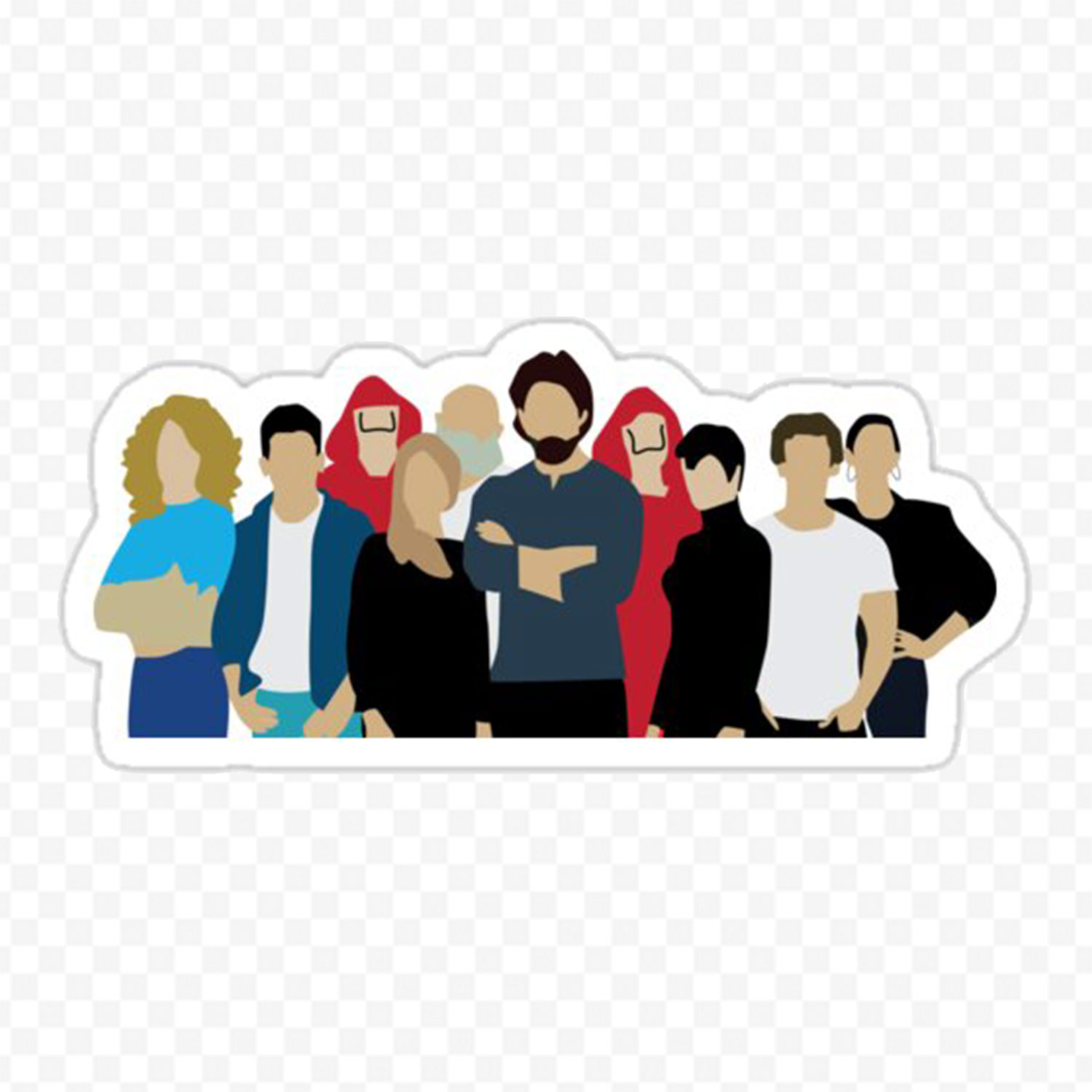 Votre sticker Equipe Casa De Papel est détouré à la forme, il n’y aura donc pas de fond sur celui-ci, le stickers Equipe Casa De Papel laissera apparaître la couleur du support.